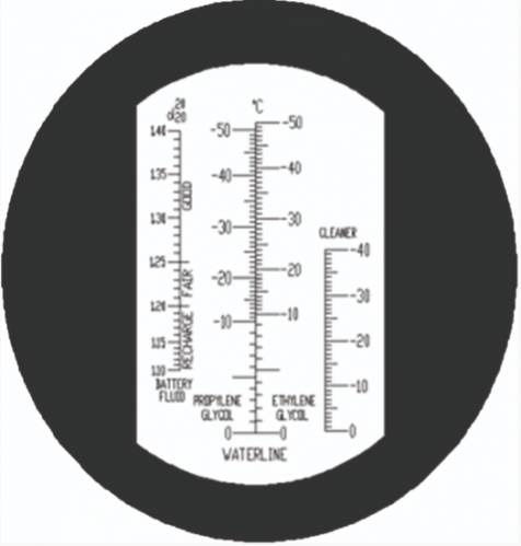 Refractometru pentru antigel și baterii cu compensare automată a temperaturii.